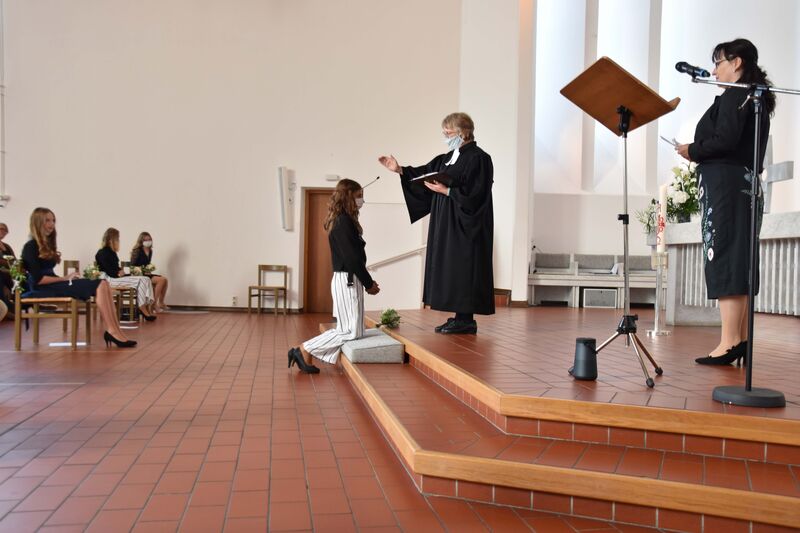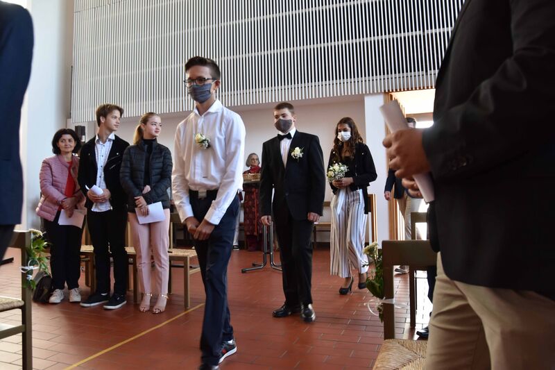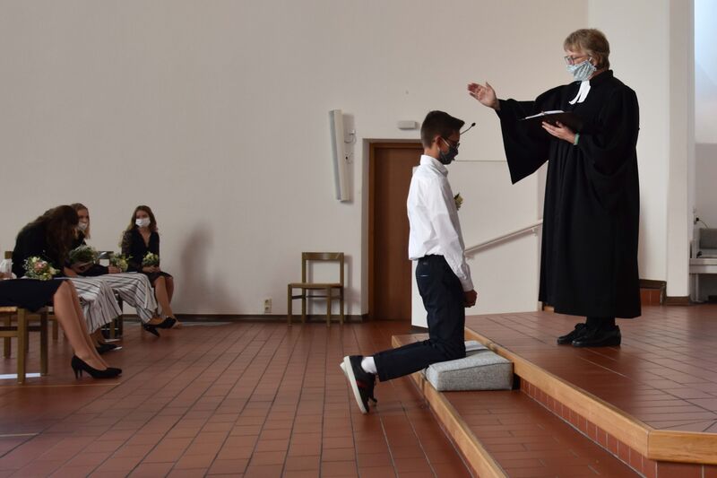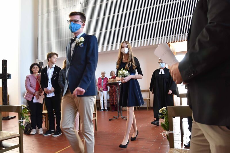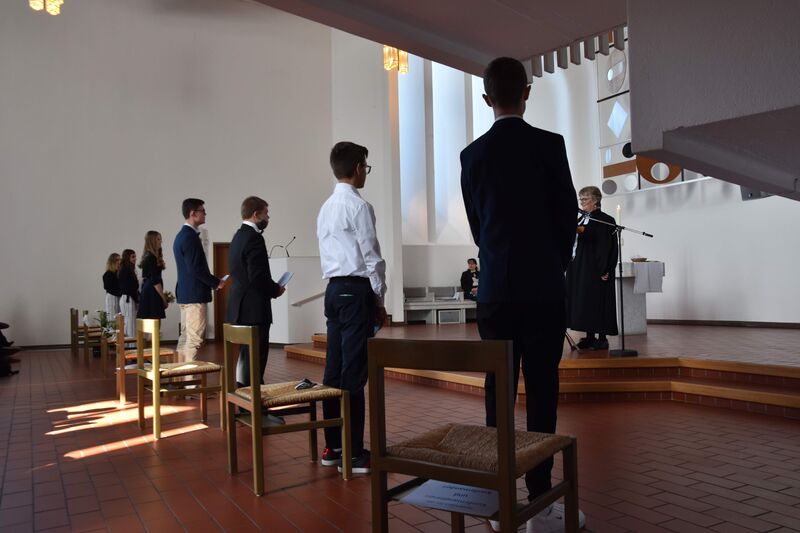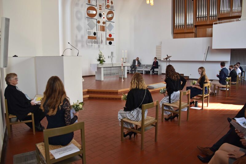 Kim, Davin, Janette, David, Philippe, Viktoria, Chiara und Elias hatten eigentlich im Mai 2020 konfirmiert werden sollen. Das war wegen der stregneren Auflagen gegen die Corona-Pandemie dann nicht möglich.