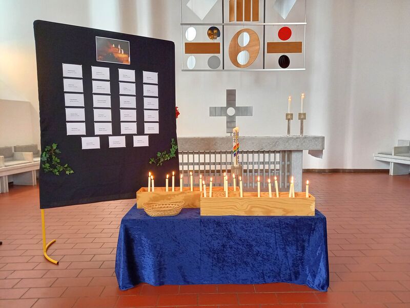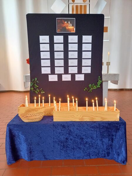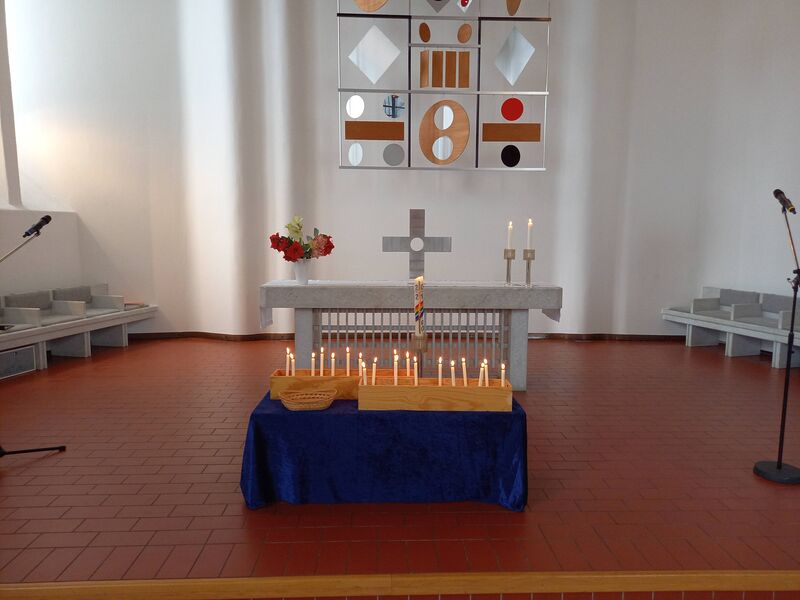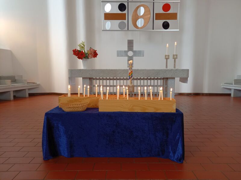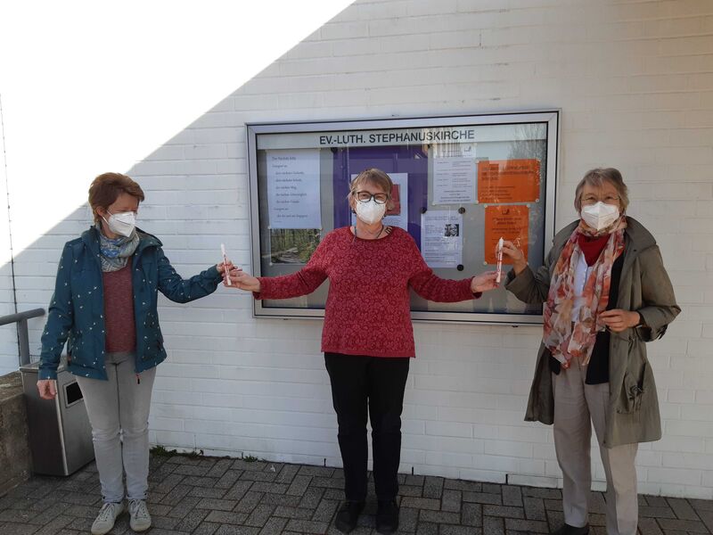 Die Osterkerzen werden in der Stephanusgemeinde verteilt - in den Umschlägen mit einer Osterandacht für zuhause, die vor der Kirche gepflückt werden können und bei der offenen Kirche am Ostersonntag.