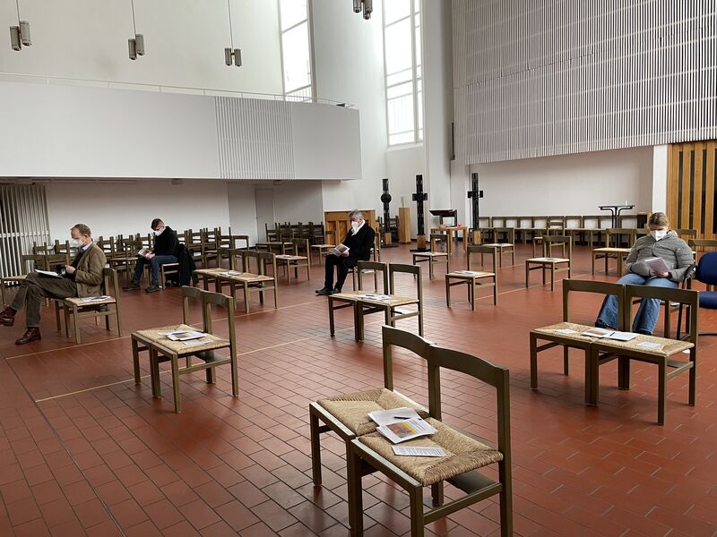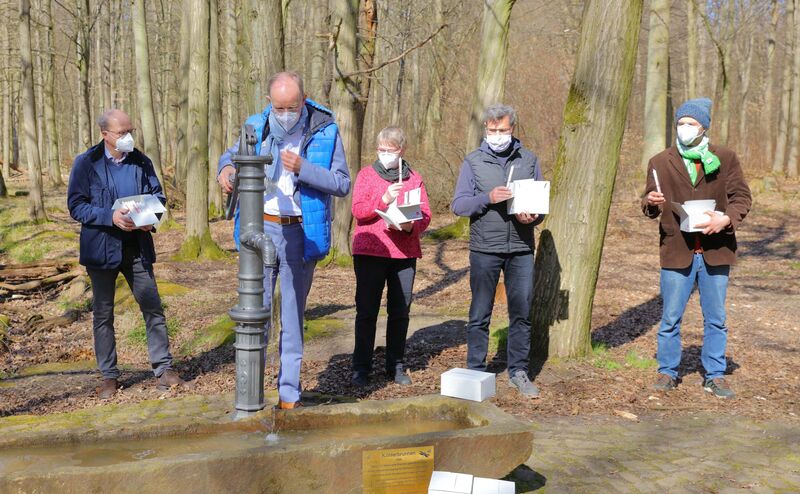 Am Montag, den 29. März besuchte Bischof Meister Wolfsburg und traf sich mit Vertreterinnen und Vertretern der Stadtkirchengemeinde, der Lukasgemeinde, der Stephanusgemeinde und von St. Michaelis, Fallersleben und St. Petri, Mörse. Wir hatten den Köhlerbrunnen im Stadtwald als Treffpunkt ausgesucht. In einer kurzen Andacht fragte Bischof Meister, was uns Hoffnung gibt auch in schwierigen Zeiten.