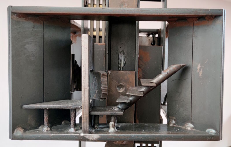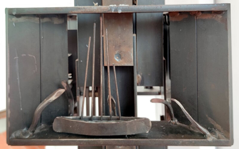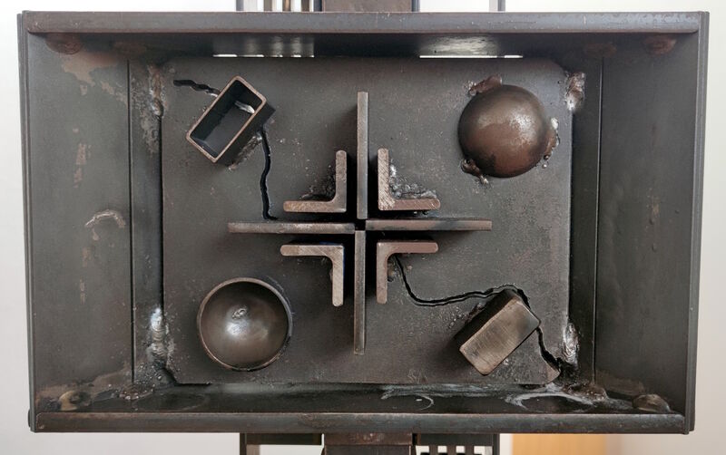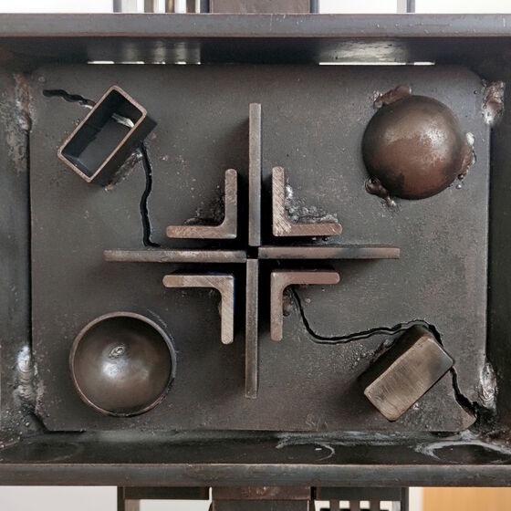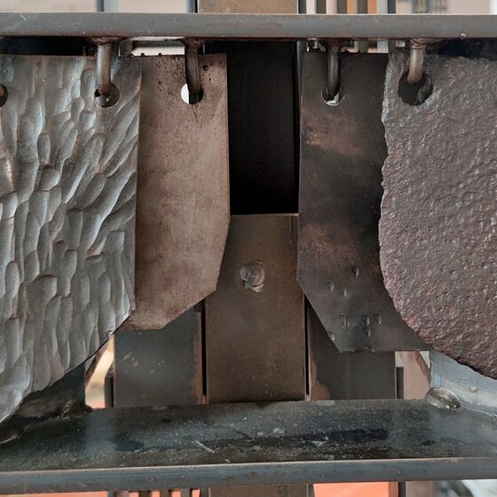 Acht „Bühnen“ an zwei Lichterstelen sollten von Jugendlichen gestaltet werden. Ein spannender Prozess begann. Die Jugendlichen haben sich zunächst mit mir und Christoph Gedanken über ihren bisherigen Lebensweg gemacht und diesen in eine Bildcollage umgesetzt. Im gemeinsamen Gespräch wurde daraus ein Aspekt herausgestellt. Mit Stephan Lindeggers Hilfe begannen die Jugendlichen die darin enthaltenen Gedanken und Gefühle auf einfache Formen zu reduzieren. In der zweiten Herbstferienwoche war es dann so weit, die handwerkliche Umsetzung begann auf dem Detmeroder Marktplatz vor der Kirche. Es wurde gehämmert, geschmiedet, geschweißt und gefeilt. Viele Detmeroder sahen sich das bunte Treiben an und es stellte sich heraus, dass viele in irgendeiner Form Beziehung zum Schmieden hatten. Erwachsene, Jugendliche und Kinder ließen sich auch dazu animieren, die nötigen Blätter für die dritte Stele zu schmieden. Es waren vier intensive Tage mit viel Arbeit. Zum Wohlfühlen trug auch dazu bei, dass Helke, Julie und Helene uns das Mittagessen bereiteten und die „Apfelkuchen-Gang“ spontan beim Kuchen backen half.