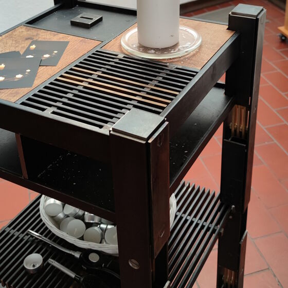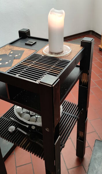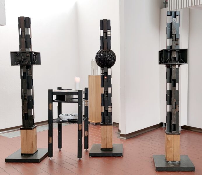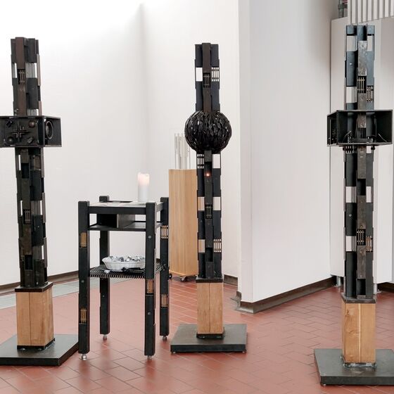 Am Anfang war die Idee in der Kirche einen Lichterglobus aufzustellen. Durch Ernst Siedentopf wurde der Kontakt zum Künstler Stephan Lindegger hergestellt, der uns durch seinen Entwurf mit drei Lichterstelen überzeugte.